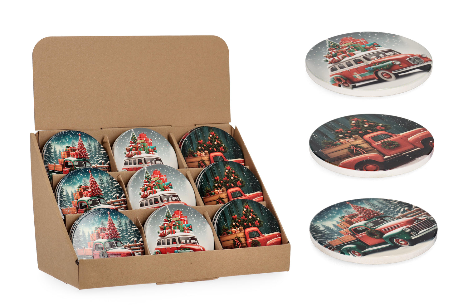 Dessous de verre Bizzotto Noël Gwen Pickup Ass. D 10,8 cm, céramique multicolore, 1 pièce