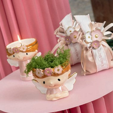 Bougie Angel rose Cupid & Co. D 75 mm H 95 mm avec cabas