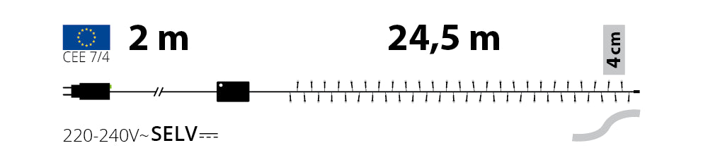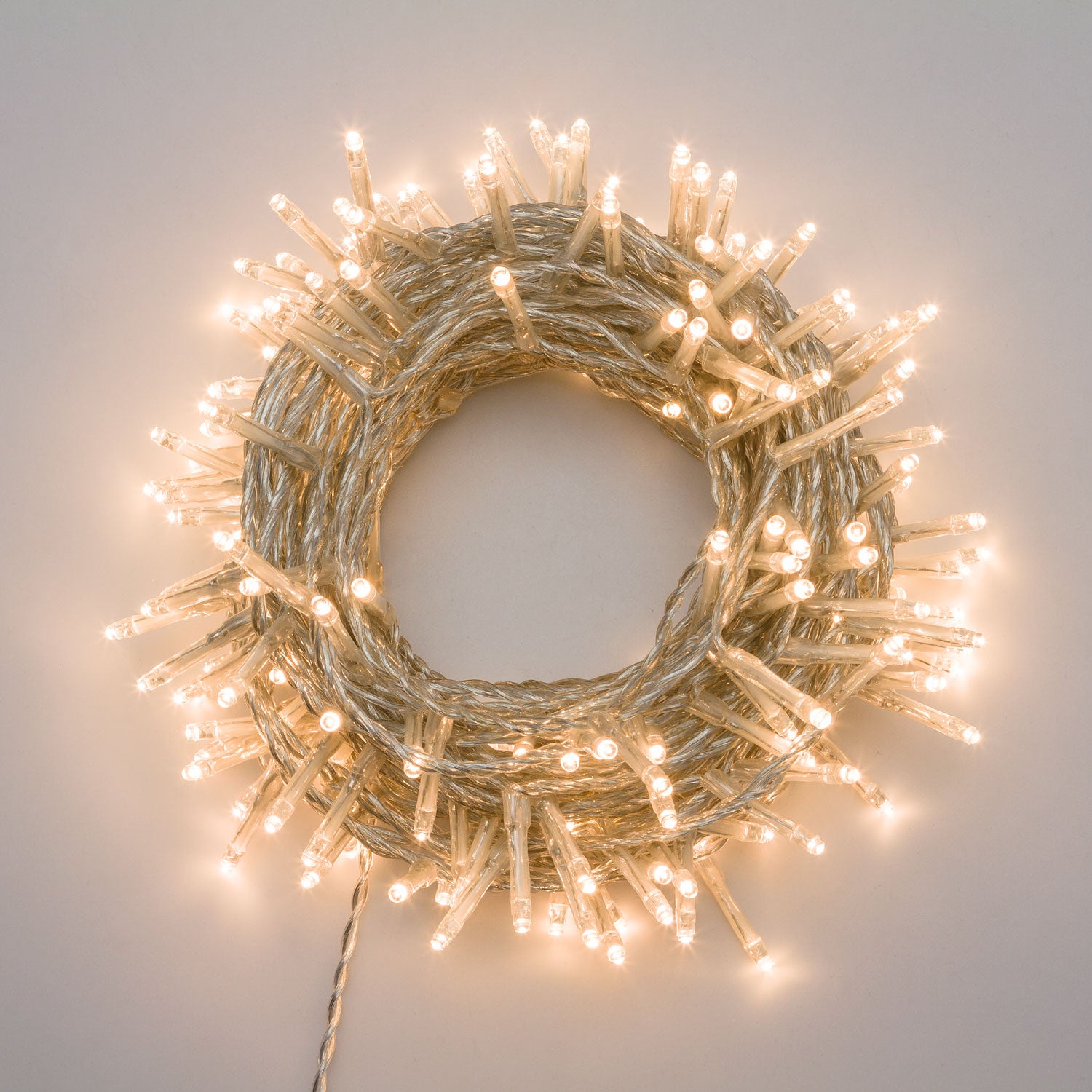 Guirlande de Noël linéaire 600 LED 24,5 m + 2 m de câble transparent LED blanc chaud