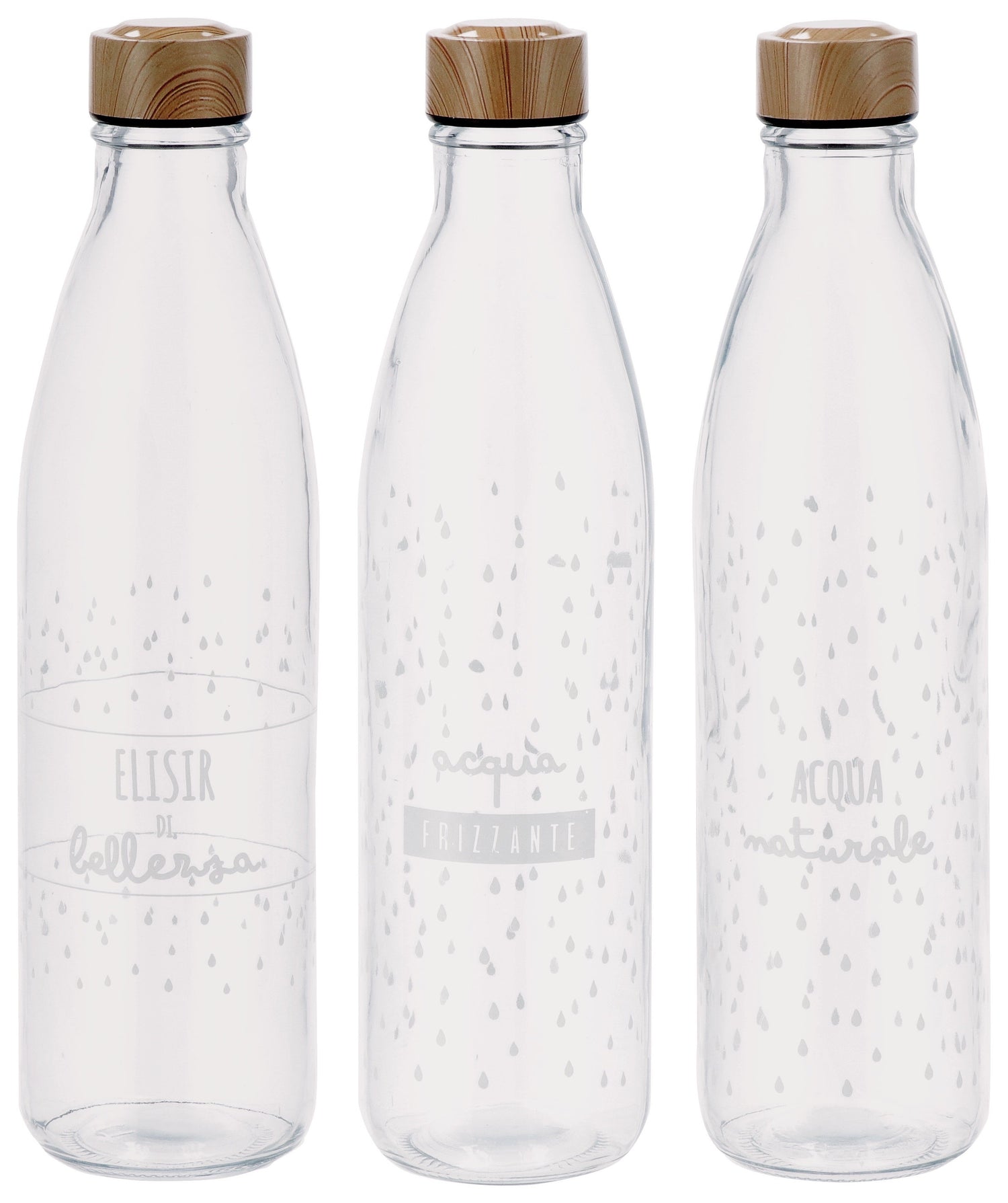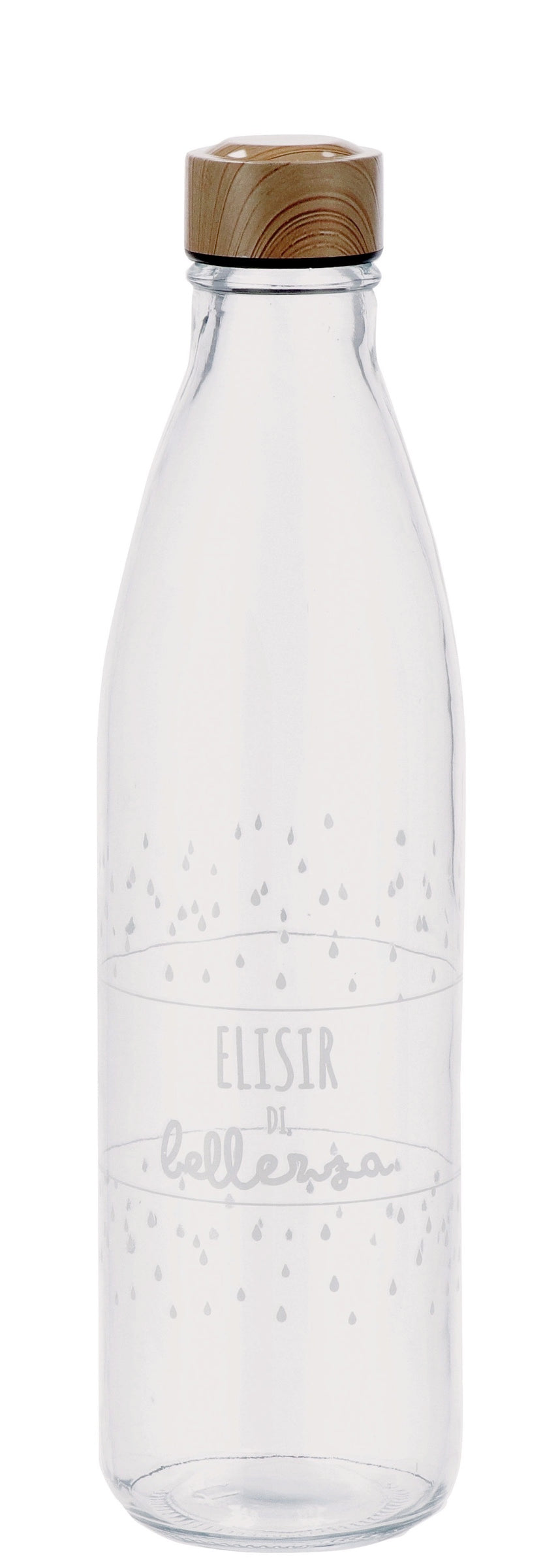Cadeau Italien, Bouteille en Verre, Bouchon en Métal, Assortiment de Décors, 1 Litre, Diamètre 8 cm, Hauteur 31 cm, 1 Pièce.