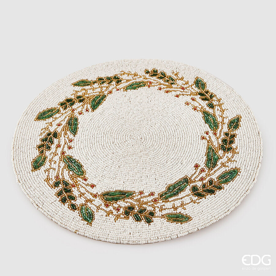 Set de table rond EDG Enzo De Gasperi Holly avec perles, diamètre 36 cm, blanc et vert