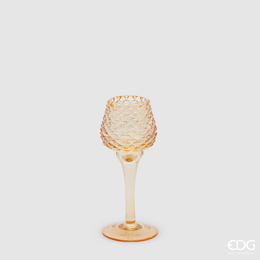 Bougeoir EDG Enzo De Gasperi Pomme de pin Verre Noël H 18,5 cm P 7,5 cm Ambre