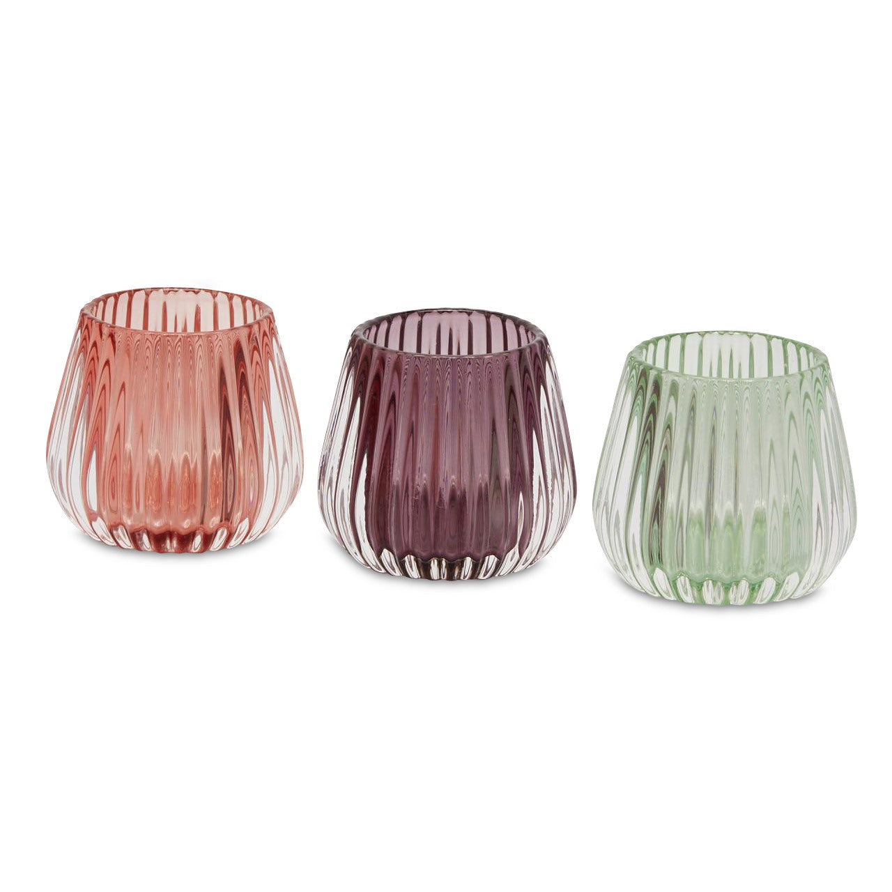 Bougeoir EDG Enzo De Gasperi Rayures Évasées H7,5 D8 Vert Rose 3 Pièces