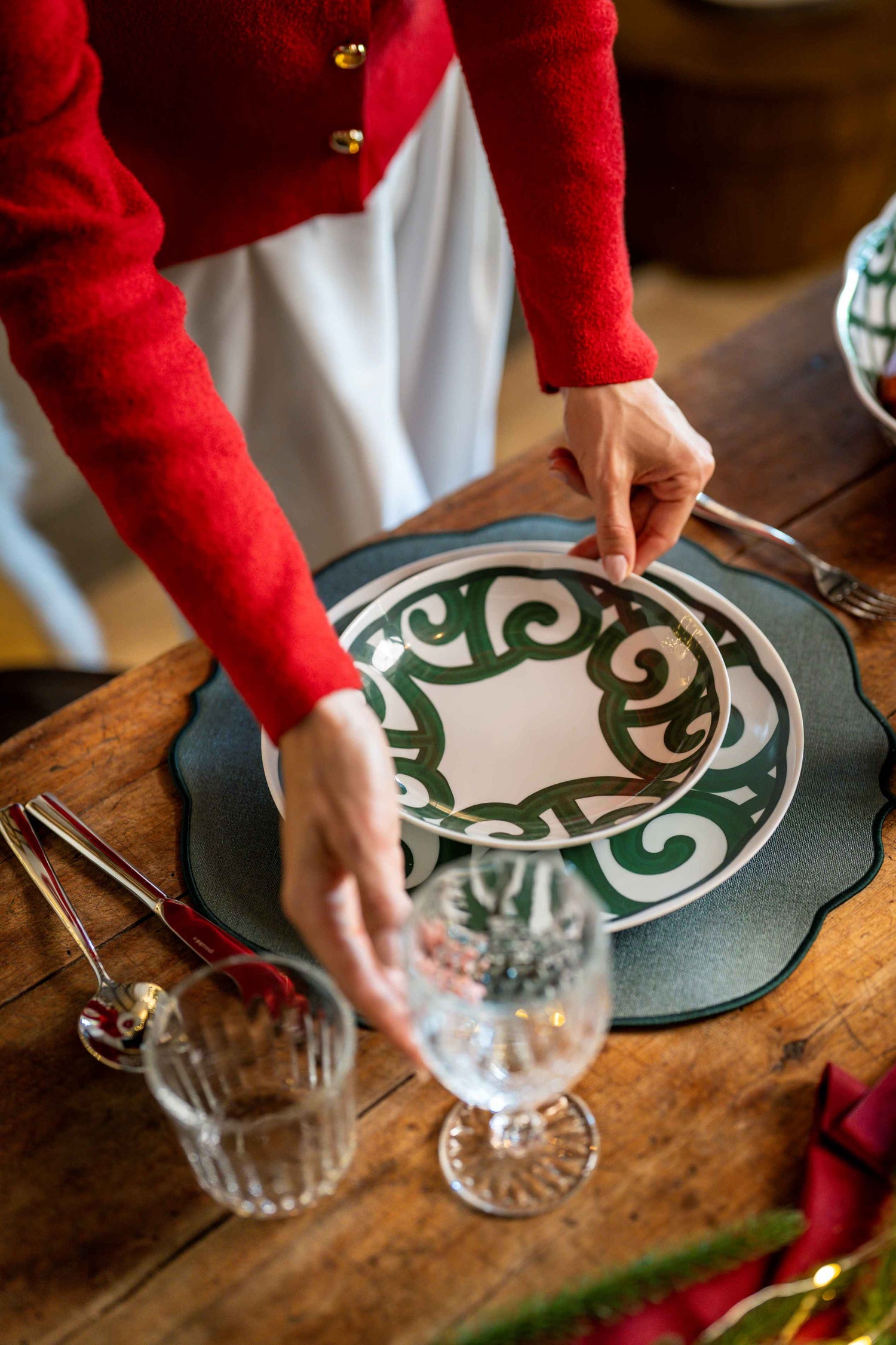 🎨 Design élégant et festif – décoration verte sur fond blanc pour une table sobre et raffinée