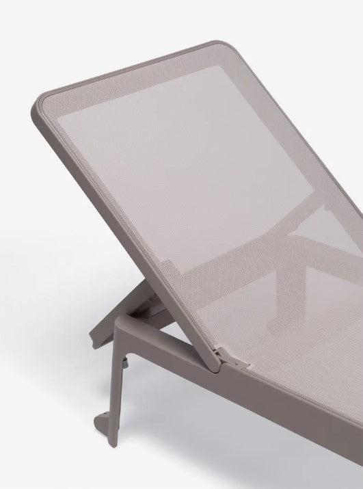 La toile Almond , en tissu synthétique respirant et remplaçable , garantit un confort optimal, un séchage rapide et un entretien facile. Le transat est fabriqué en résine recyclable et est entièrement fabriqué en Italie , selon des normes de qualité certifiées.