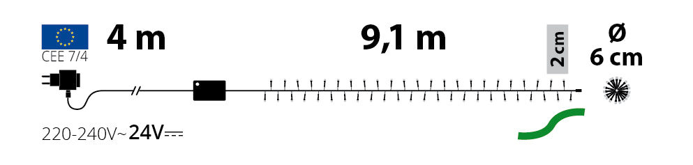 Guirlande de Noël MiniCluster Lots D 6 cm 432 LED 9,1 m + câble LED blanc 4 m