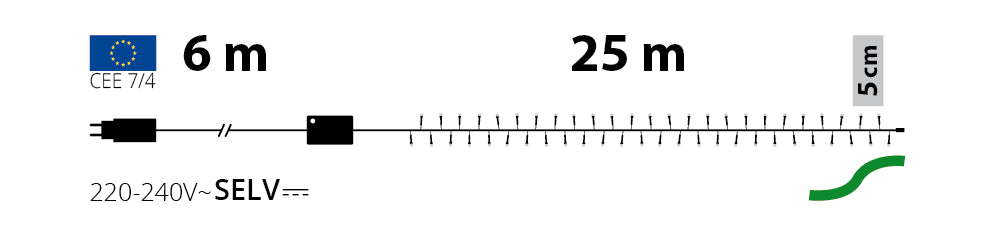 Guirlande lumineuse de Noël Mini Lucioles 4 canaux 500 MiniLed 25 m + câble LED blanc chaud 6 m
