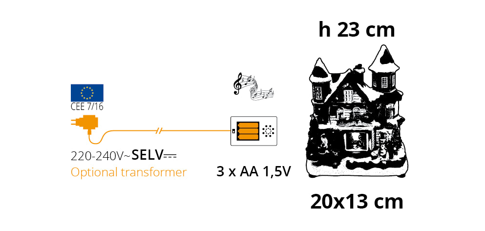 Maison de village de Noël Lotti avec traîneau de Noël LED H 23 cm 20 x 13 cm Musique