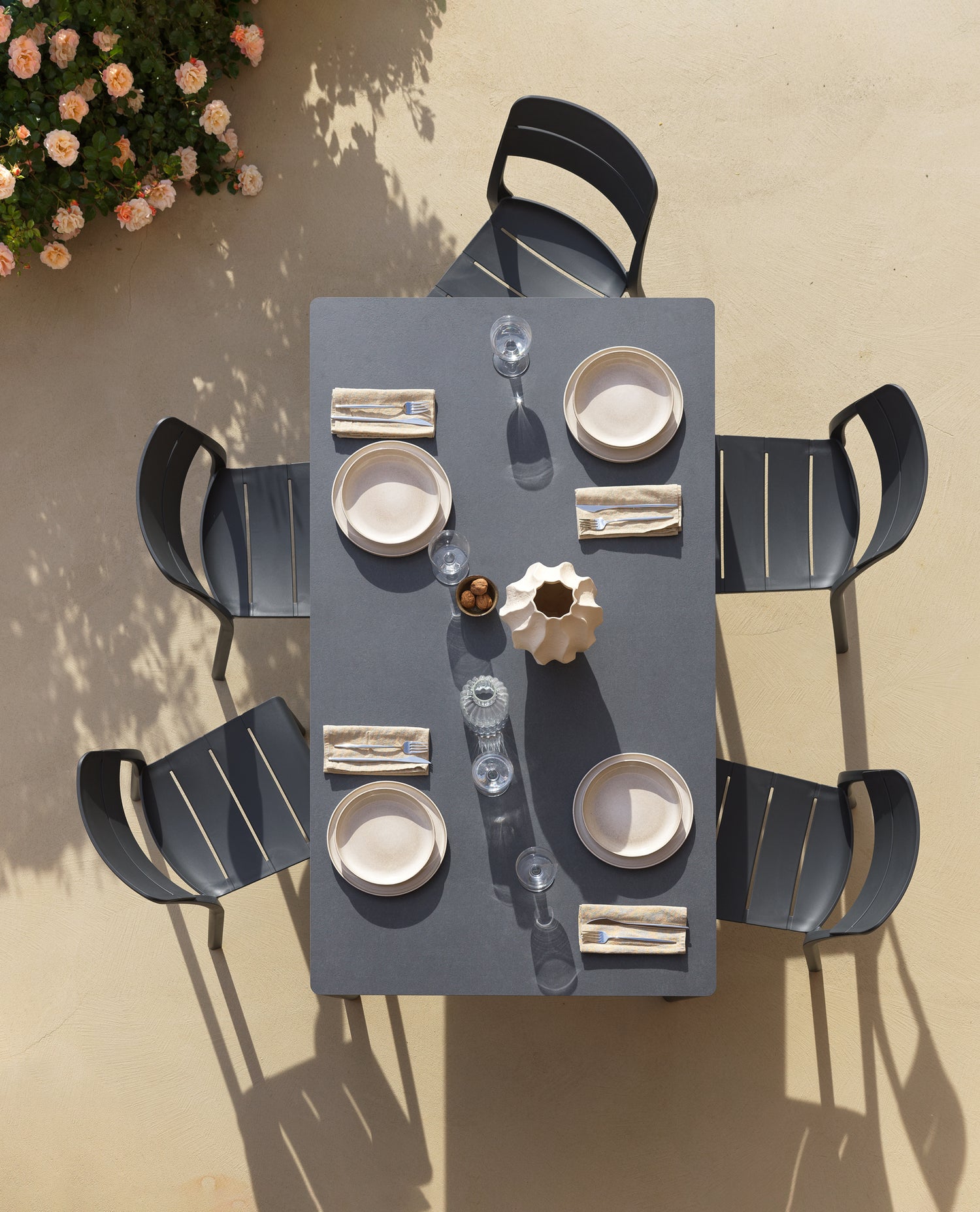 Le système Piave allie légèreté visuelle, équilibre formel et fonctionnalité . Le plateau stratifié Materia HPL Solid Core , totalement étanche , est ultra-mince, non absorbant et très résistant à l'eau, à l'humidité et aux intempéries. Sa surface texturée, associée à des angles arrondis , garantit une esthétique raffinée et une sécurité d'utilisation accrue.