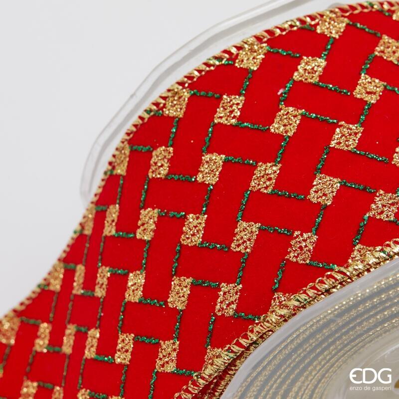 EDG Enzo De Gasperi Ruban pour décorations de Noël H 65 mm L 10 m Vert Rouge