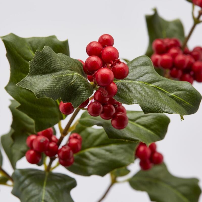 La branche de Noël Rex de 66 cm avec baies et feuilles, signée EDG Enzo De Gasperi, est une décoration élégante et réaliste, idéale pour compléter vos compositions florales, couronnes et centres de table de Noël. Ses baies rouges brillantes et ses feuilles vertes finement détaillées recréent l'aspect authentique du houx, pour un rendu naturel et raffiné.