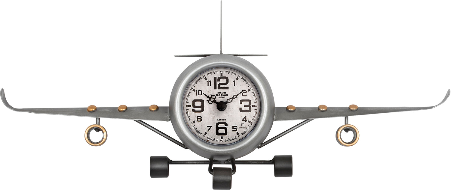 🕰️ Horloge de table ou murale Lowell en forme d'avion | Métal antique | 41 x 16 x 8 cm | Argent