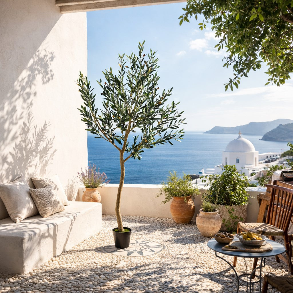 Un complemento d’arredo raffinato, pratico e sempre impeccabile, perfetto per chi desidera il fascino dell’olivo mediterraneo senza manutenzione.