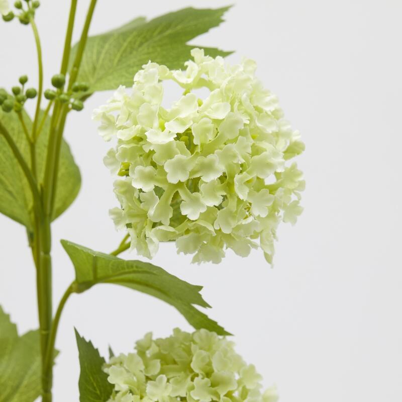 Ramo artificiale di Viburno con x5 sfere floreali compatte e fogliame verde naturale, caratterizzato da una tonalità verde chiaro fresca e luminosa. Ideale per composizioni floreali moderne, primaverili ed eleganti.