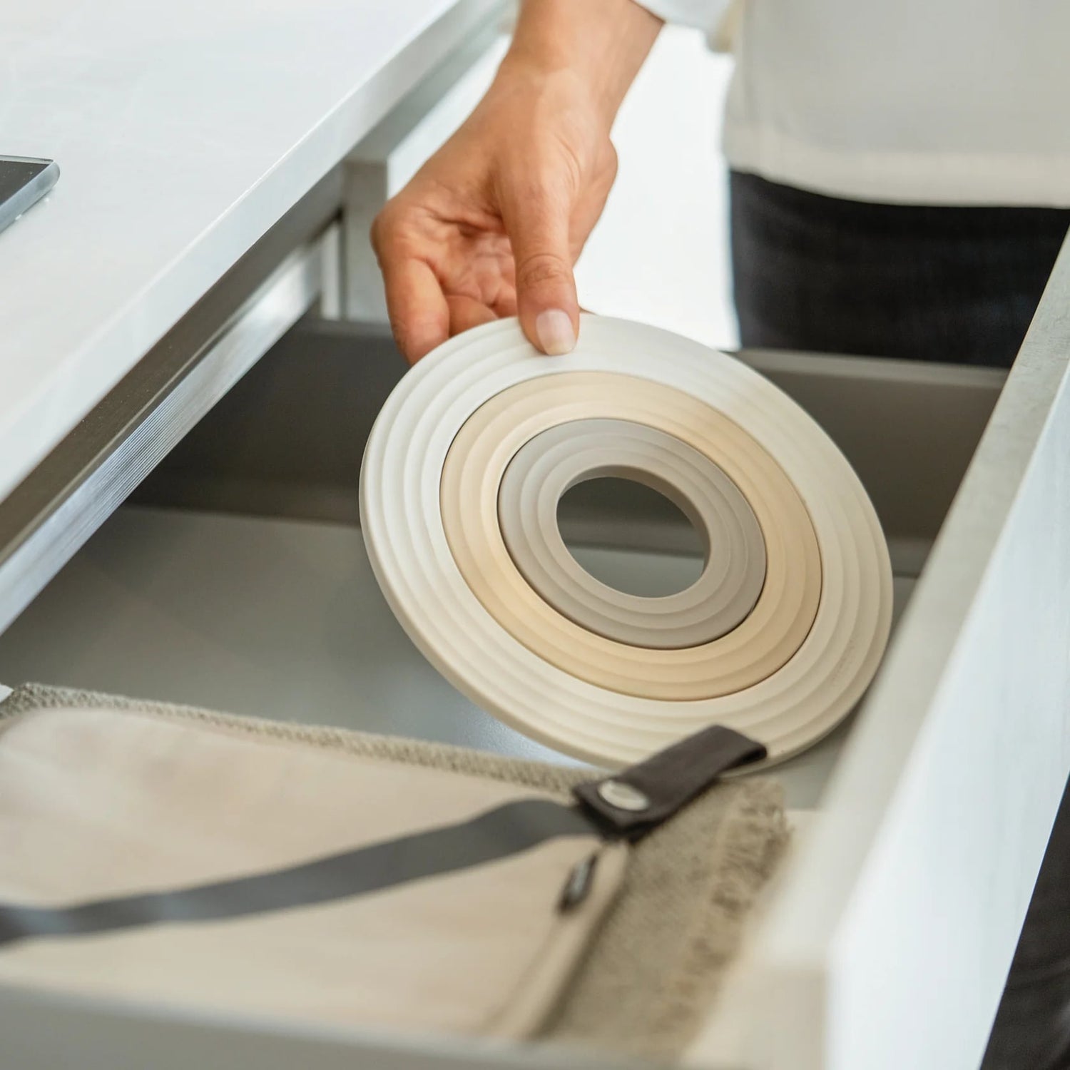GUZZINI Set de 3 Dessous de Plat 3en1 Anneau Blanc, Beige, Cappuccino