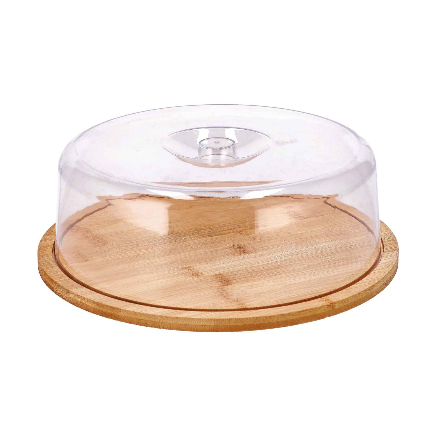 Plateau en bois italien avec cloche D 27,5 cm H 9 cm