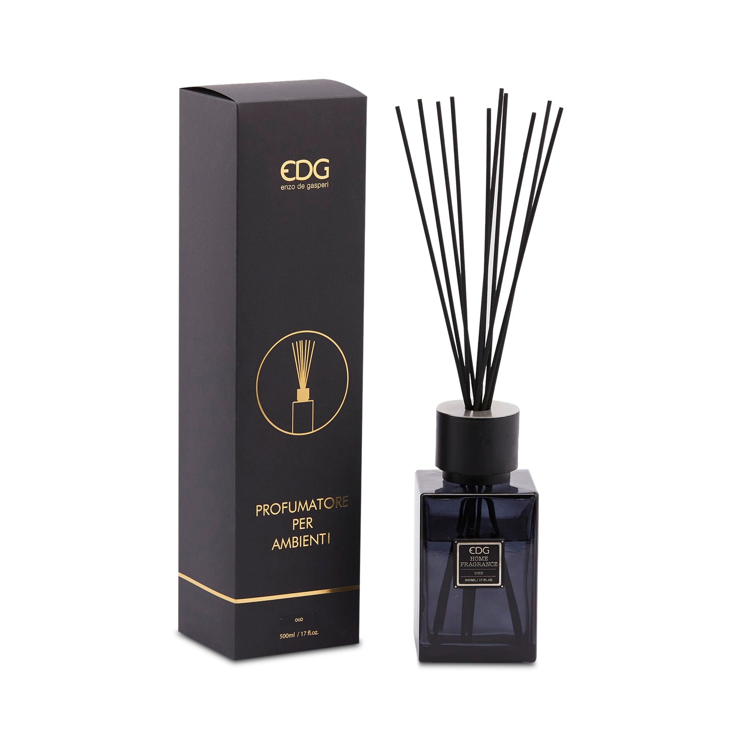 Parfumeur EDG Enzo De Gasperi Flacon 500 ml Carré Satin + Bâtonnets H17 Oud