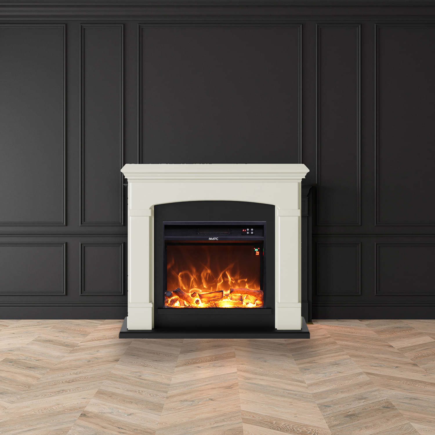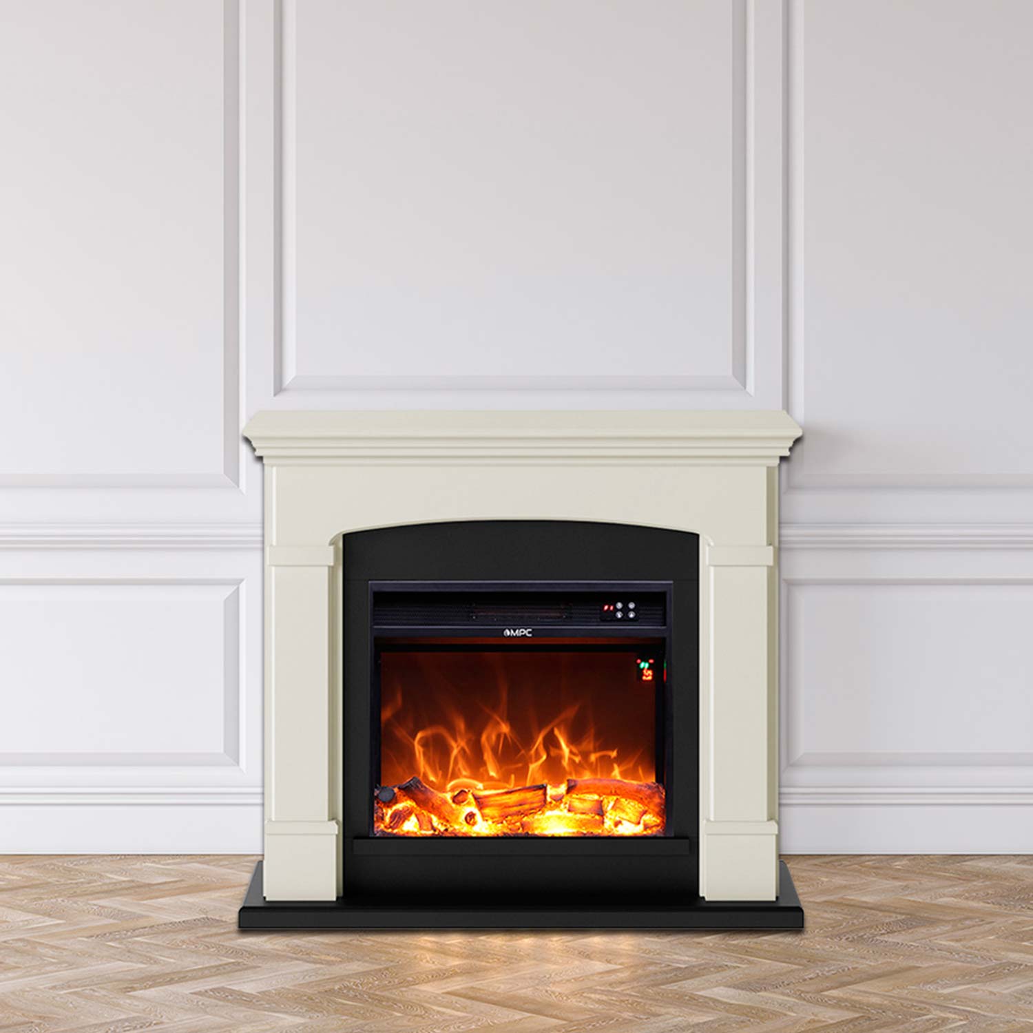Cheminée SINED MPC Camino Siena avec brûleur électrique de 1 500 W et télécommande, couleur blanc crème