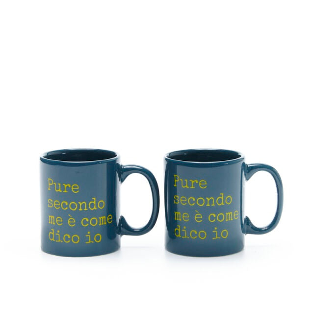 More Forty +40 Set de 2 Tasses en Céramique 12 cl – Imprimé « Pure Secondo Me è Come Dico Io » Bleu 💙