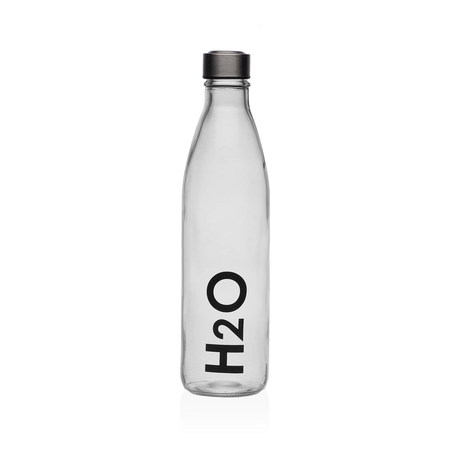 Made of durable clear glass , it features the H2O logo in black for a clean, contemporary look. The aluminum cap ensures an airtight seal, ideal for keeping water and cold drinks cool.