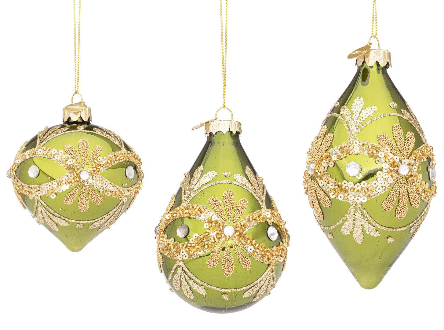 Bizzotto Garish Assorted Christmas Ornament, Green Glass, 1 pc.