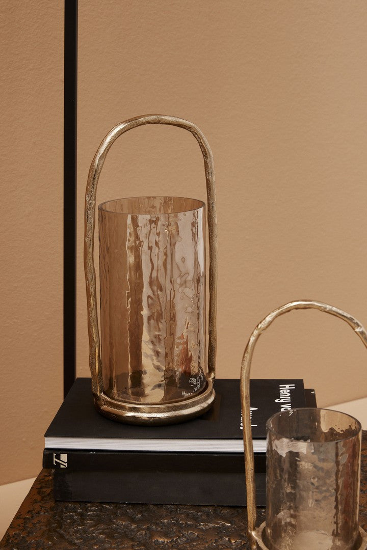 Bizzotto Set of 2 Christmas Lantern Candle Holders, Sagar Round with Gold Handle