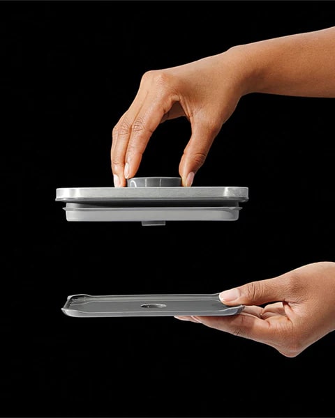 Its One-Touch system, activated by a simple button, ensures an immediate airtight seal to best preserve any type of dry food. Stackable, modular, and completely transparent, it is designed to simplify life in the kitchen. ✨
