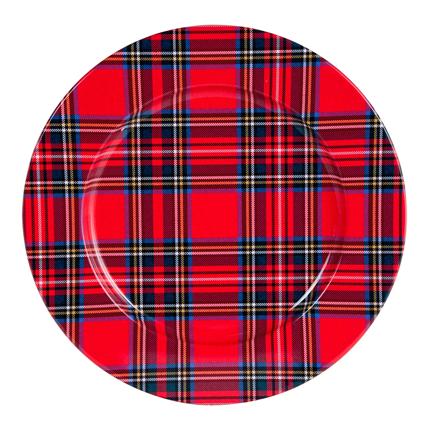 ARPIMEX Decorative Christmas Tartan Plate, 33 cm Diameter, Red Metal