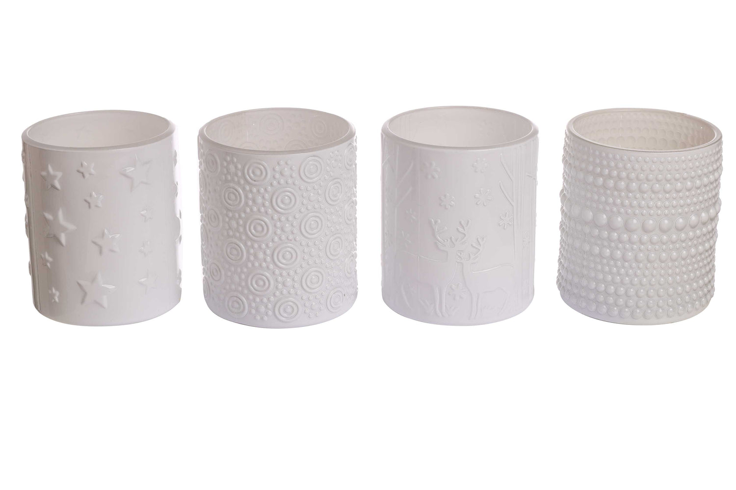 ARPIMEX Christmas Candle Holder Jar, Diameter 8.8 cm, Height 10 cm, Assorted, White Glass, 1 pc.