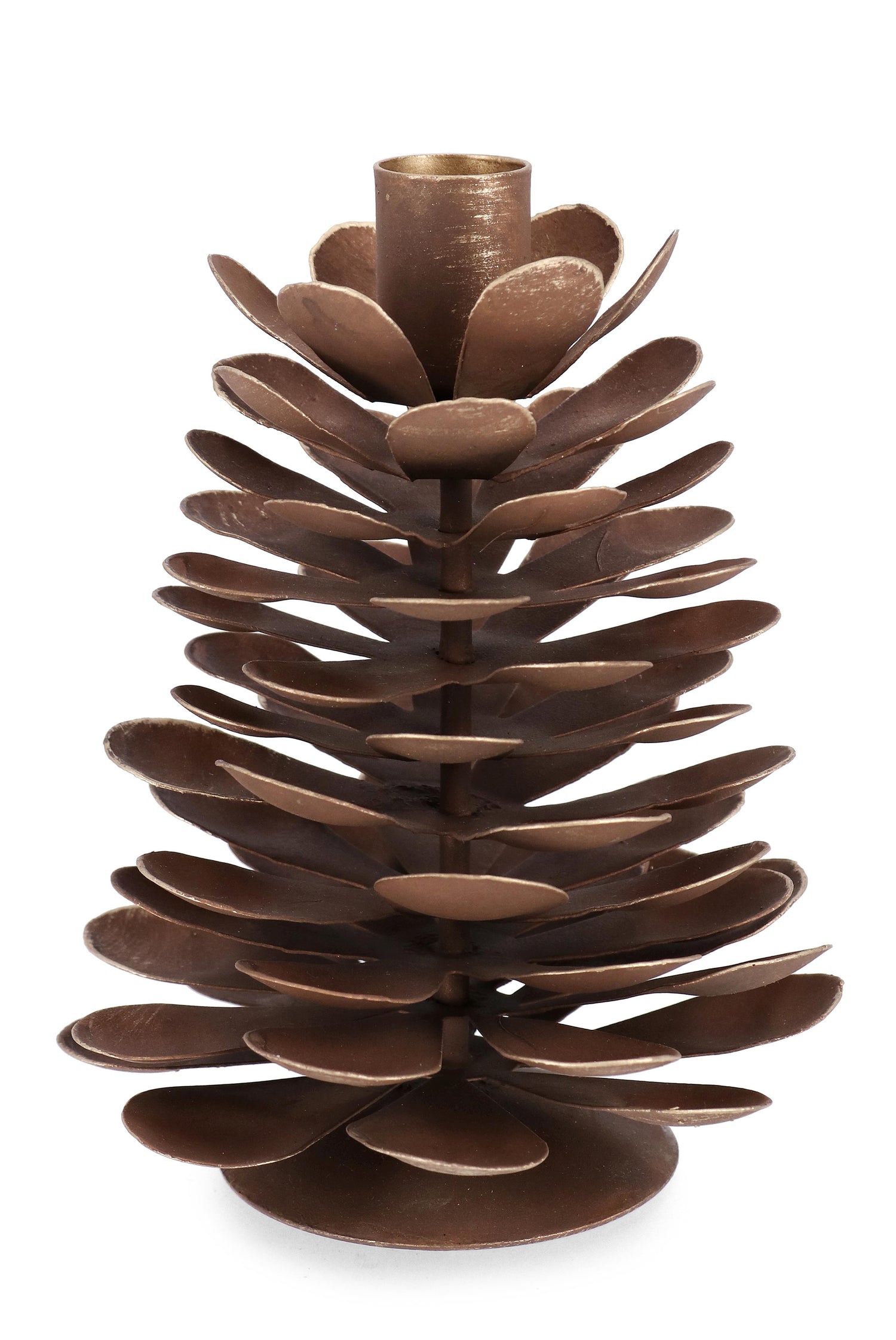 Bizzotto Harriet Christmas Candle Holder, 1 Candle, Pine Cone Shape, H 16 cm D 13 cm, Brown Metal