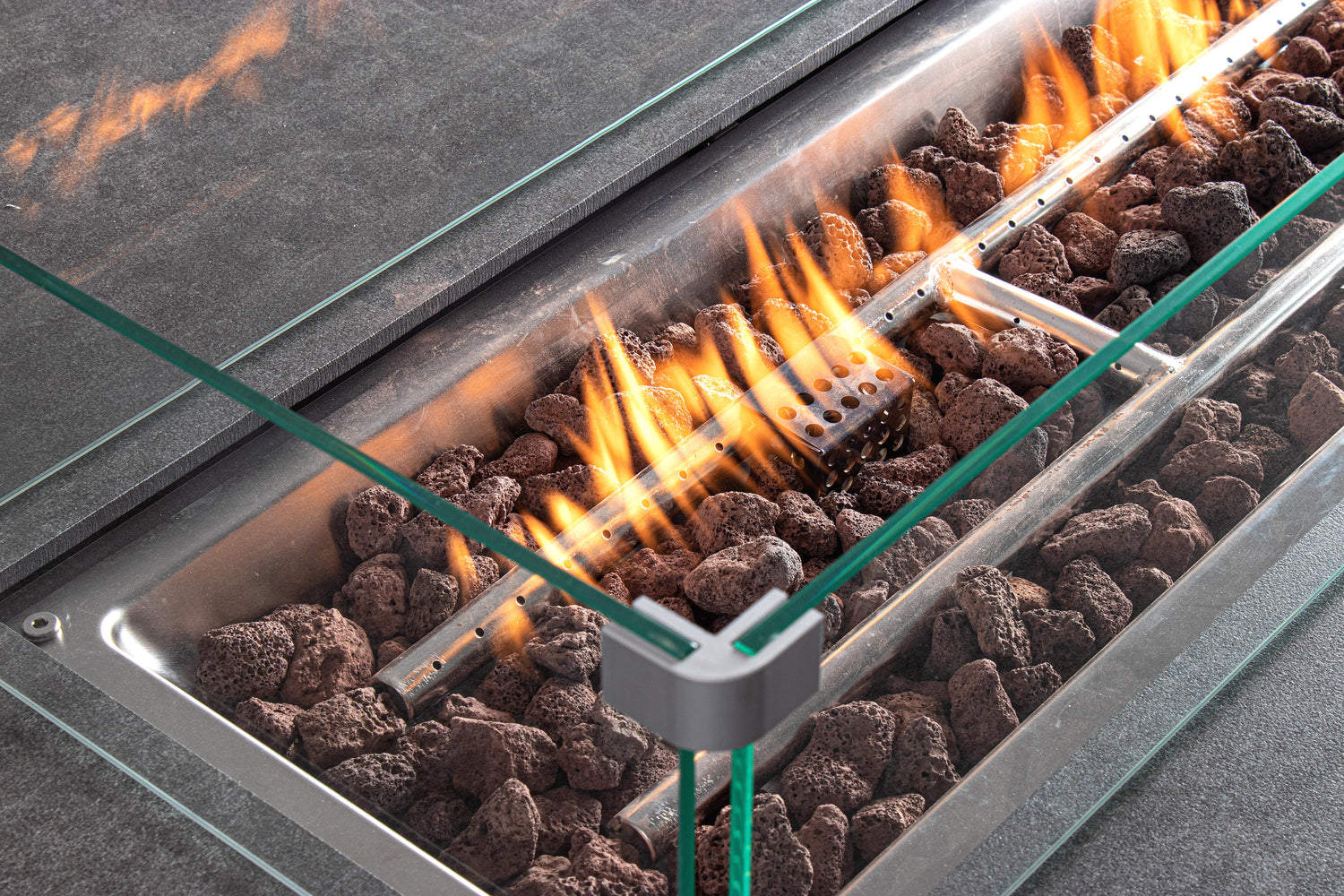 • The Gas Fireplace with Tempered Glass Screen and Lid