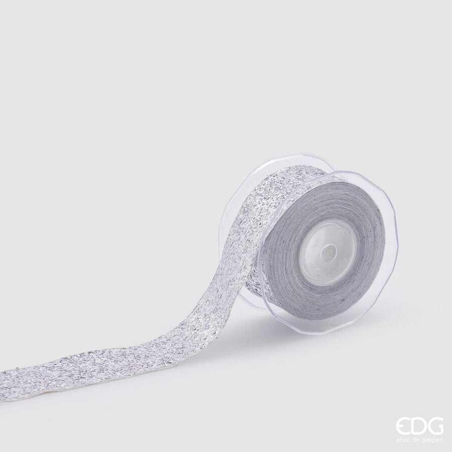 EDG Enzo De Gasperi Christmas Ribbon Shineglitt H 38 Mm 10 Mt Silver
