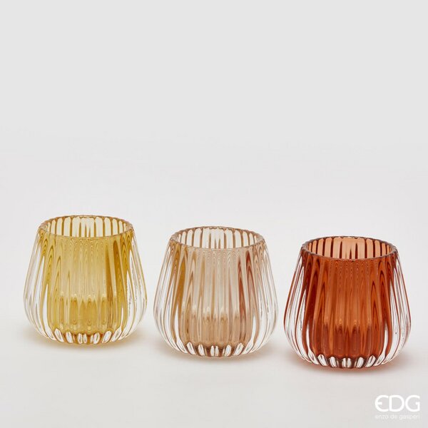 EDG Enzo De Gasperi Striped Candle Holders H 7.5 Cm D 8 Cm 3 Pcs Multicolor