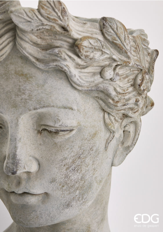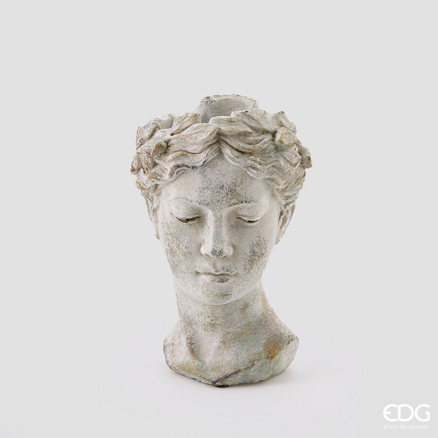EDG Enzo De Gasperi Cement Vase Woman's Head H 27 Cm D 18 Cm Grey Waterproof
