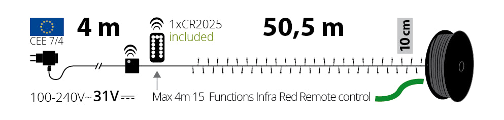 - Dimensions 50.5m + 4m Cable