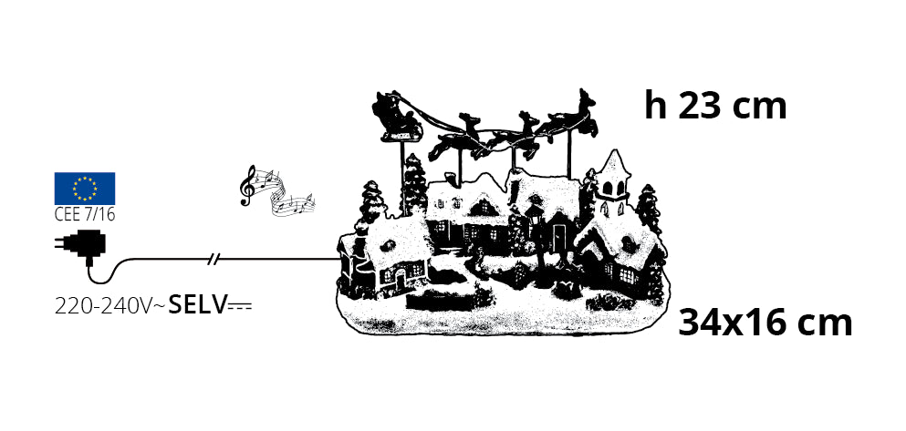 Lotti Snowy Christmas Village with Church H 23 Cm 34 x 16 Cm Led Music Rotating Movement