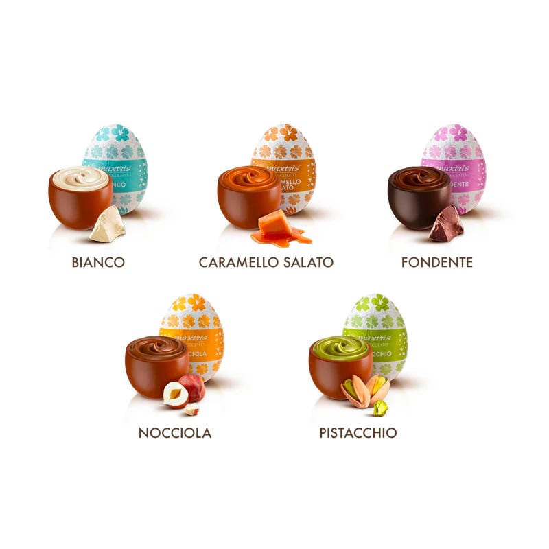 • Hazelnut, Pistachio, Salted Caramel, Dark, White