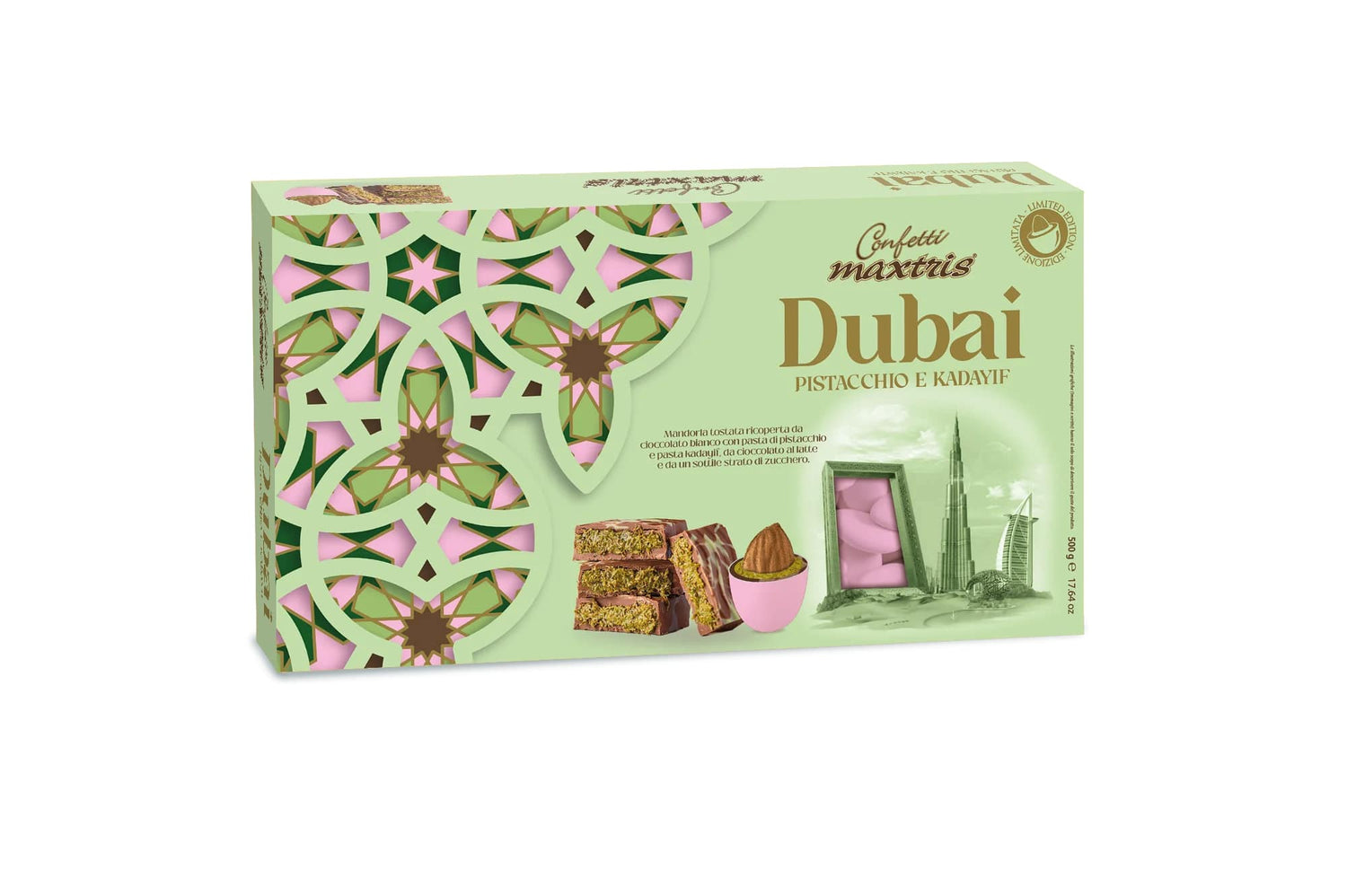 Maxtris Confetti Ciocomandorla Dubai Pink Toasted Almond and Pistachio Chocolate 500 Gr