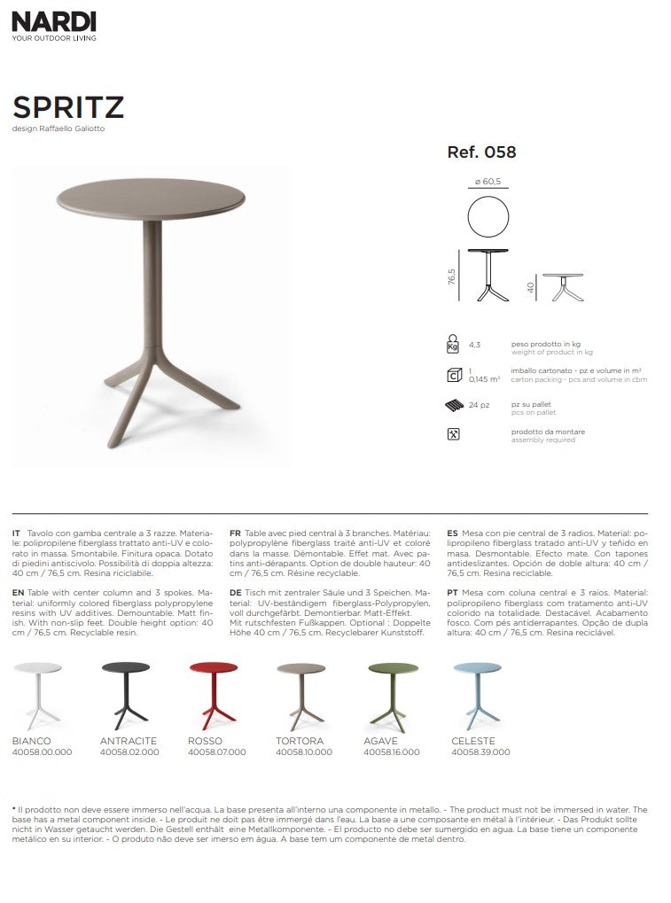 Nardi Spritz Table Dove Grey is backordered and will ship as soon as it is back in stock.