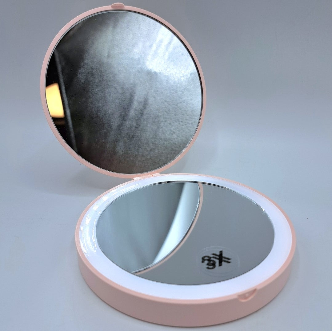 Più Forty +40 Round Foldable Portable Mirror with LED "What a Struggle to Be F..." Pink