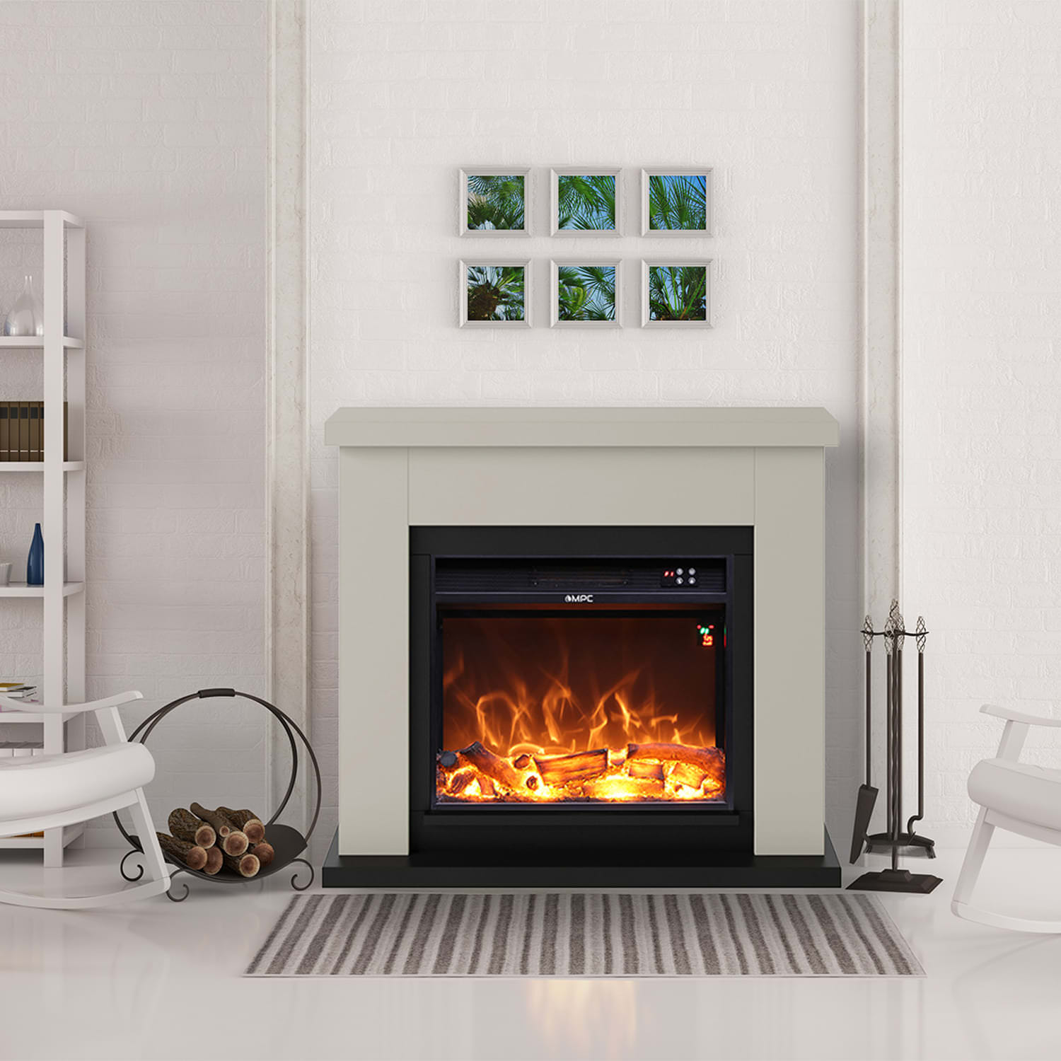Designed for easy assembly, no extra tools required, this light beige complete fireplace has a design that allows it to be placed in any room, in the home, office or wherever you need.