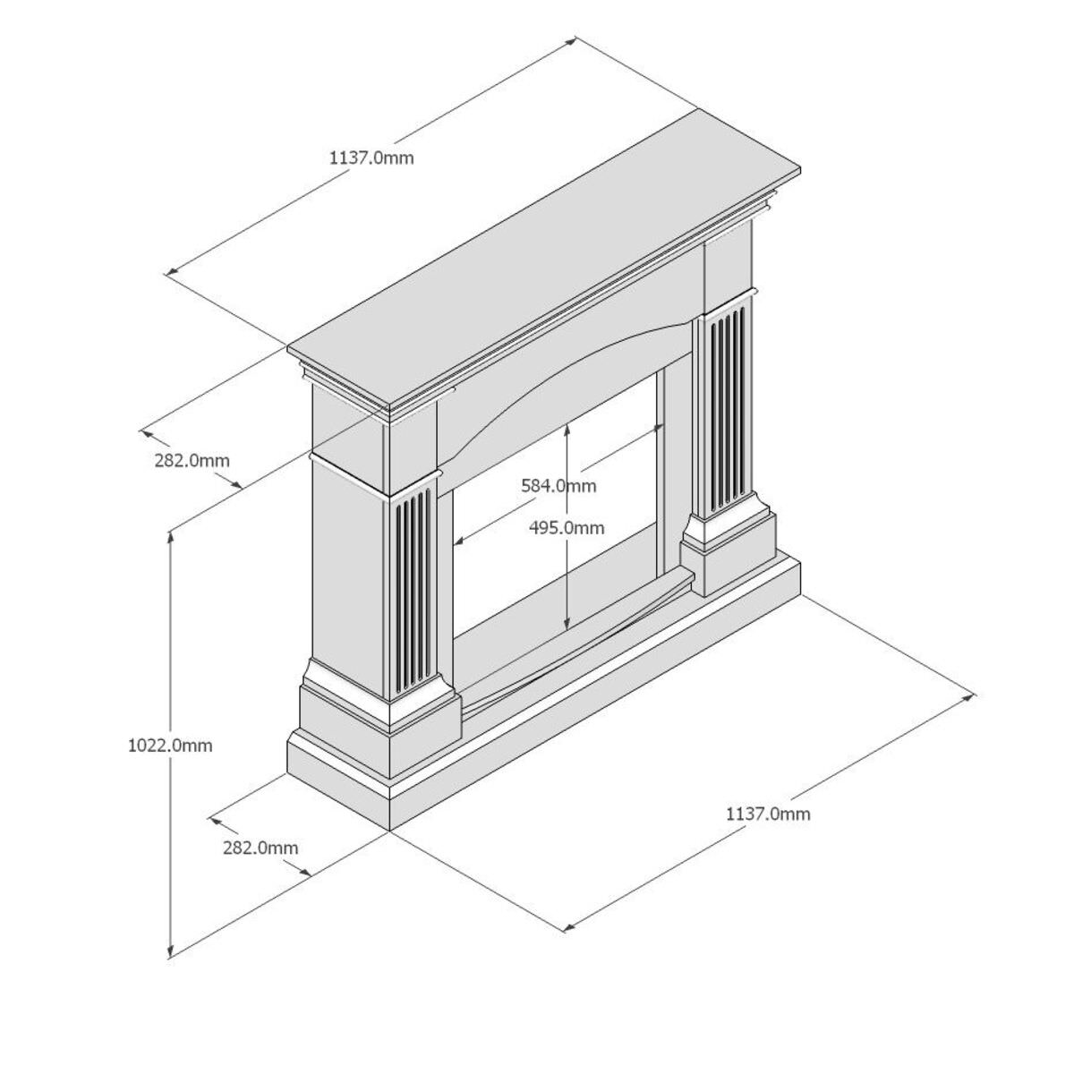 Fireplace frame with a classic and timeless design Dimensions LxDxH 1137x282x1022 mm