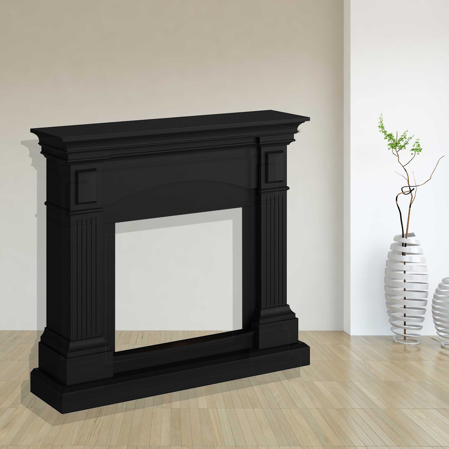 No flue pipe required, this wooden fireplace surround is completely safe. The fireplace insert surround is made of high quality MDF wood Easy to place or move