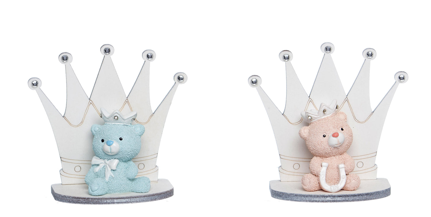Star Import Italy Crown Teddy Bear with Base H 8.5 Cm Pink Wood Bomboniera 1 Pc