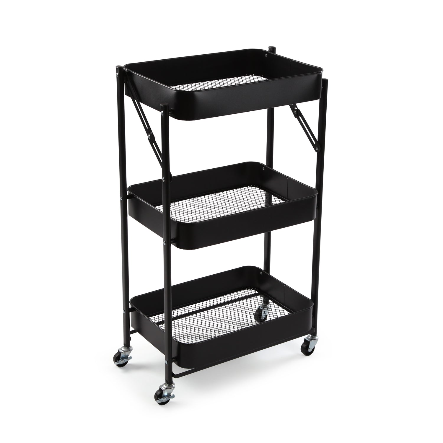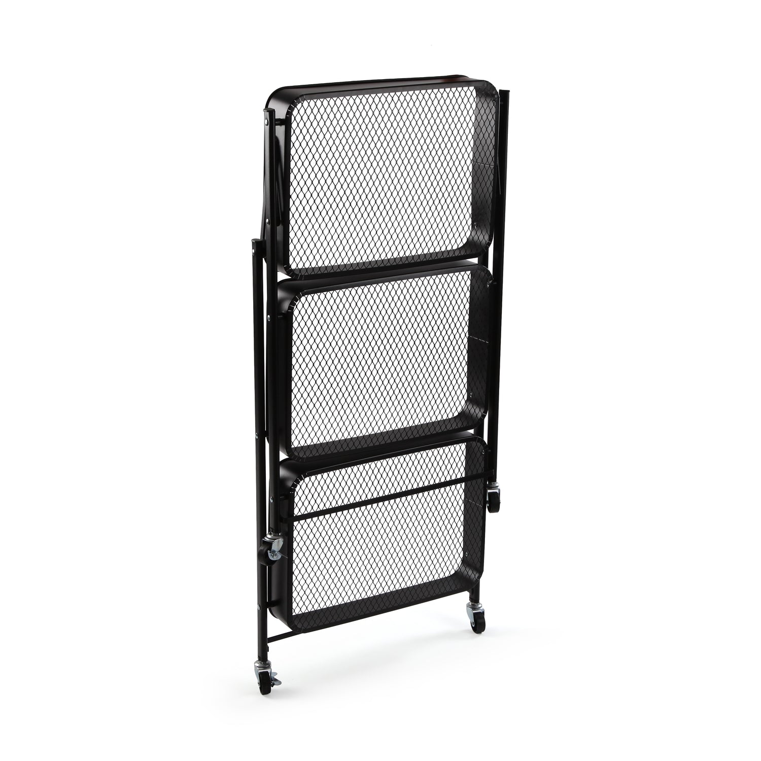Its matte black color gives it a modern, industrial look, while the three shelves offer extra space to organize everything. The swivel wheels ensure maximum practicality, and the foldable structure makes it super easy to store. ๐๐๏ธ