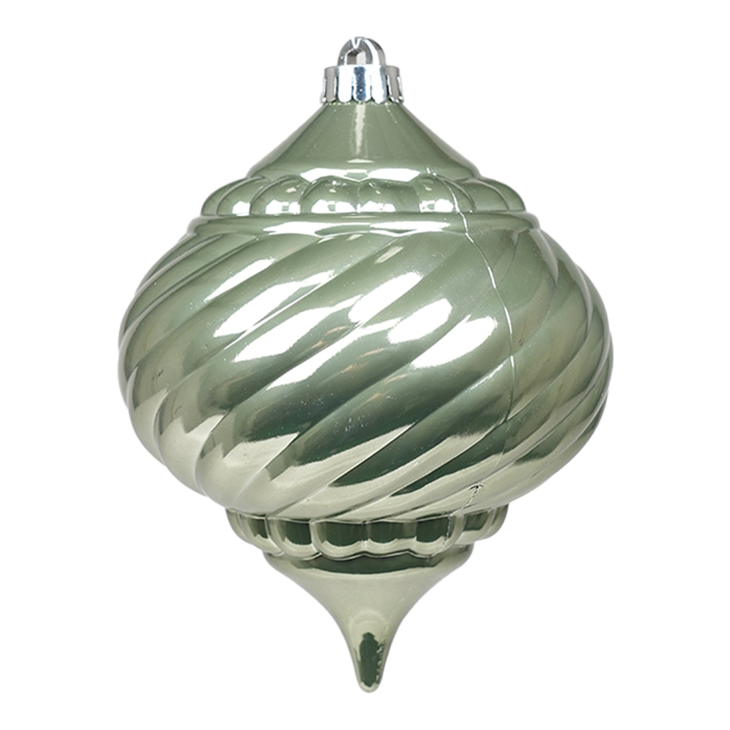 Personnalisez votre sapin avec la boule de Noël à gouttes rayées ARPIMEX Ø 150 mm en plastique vert sauge 🎅🎁.