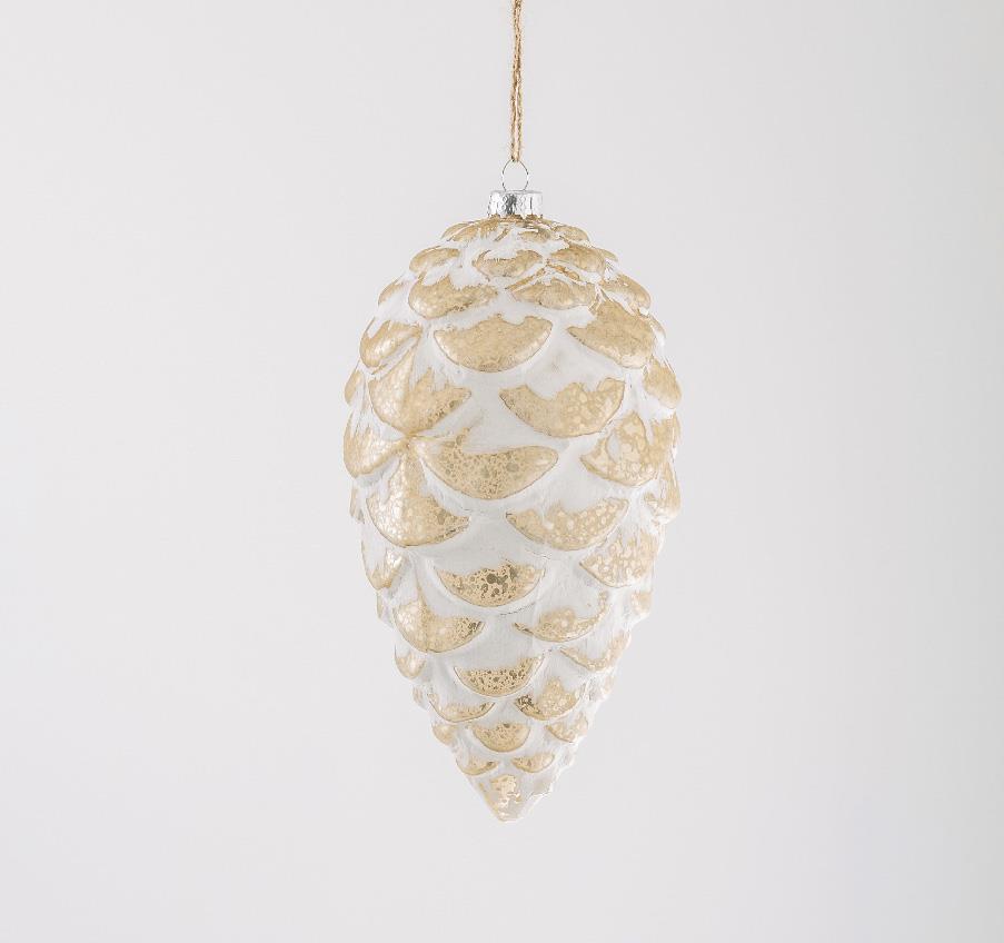 Pomme de pin en verre ARPIMEX de Noël, 9 x 16 cm, blanche