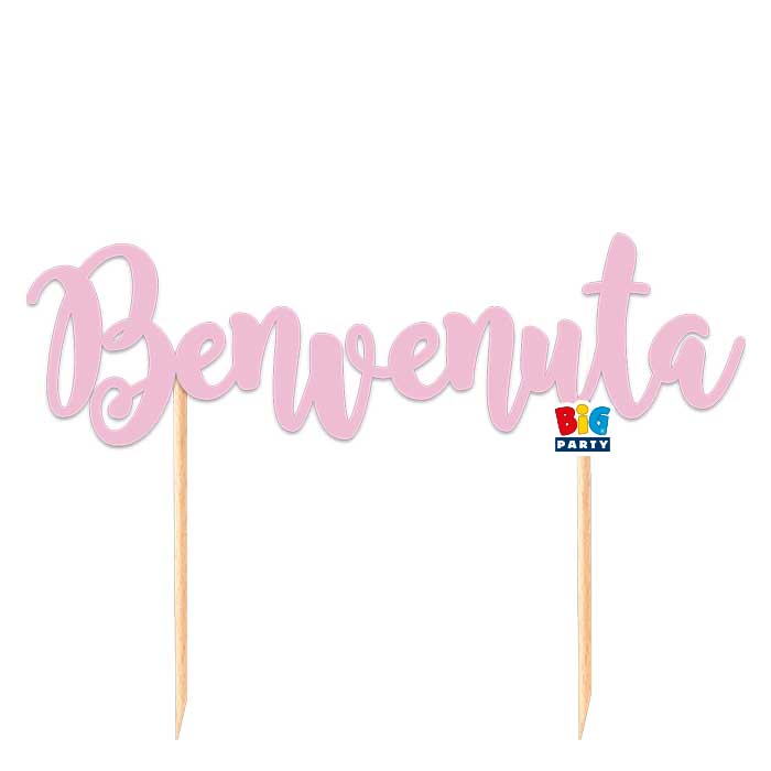 Décoration de gâteau de fête « Bienvenue » en italique, 20 x 15 cm, rose