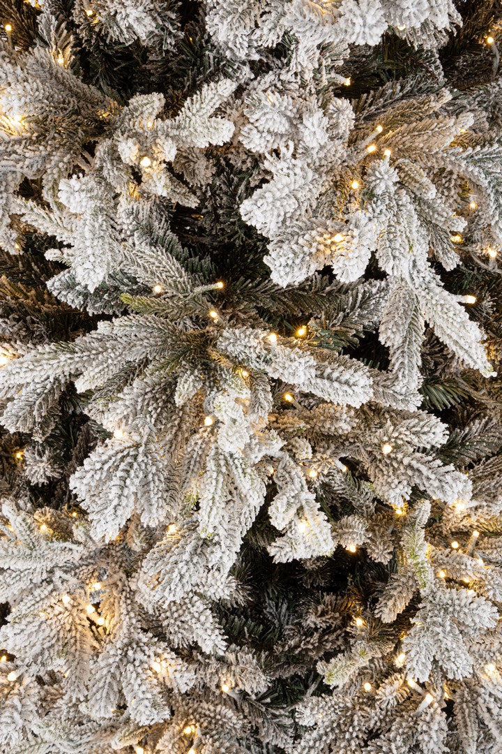 Sapin de Noël enneigé Bizzotto Berskshire, H 210 cm, D 132 cm, 4 943 branches, 1 900 lumières blanches
