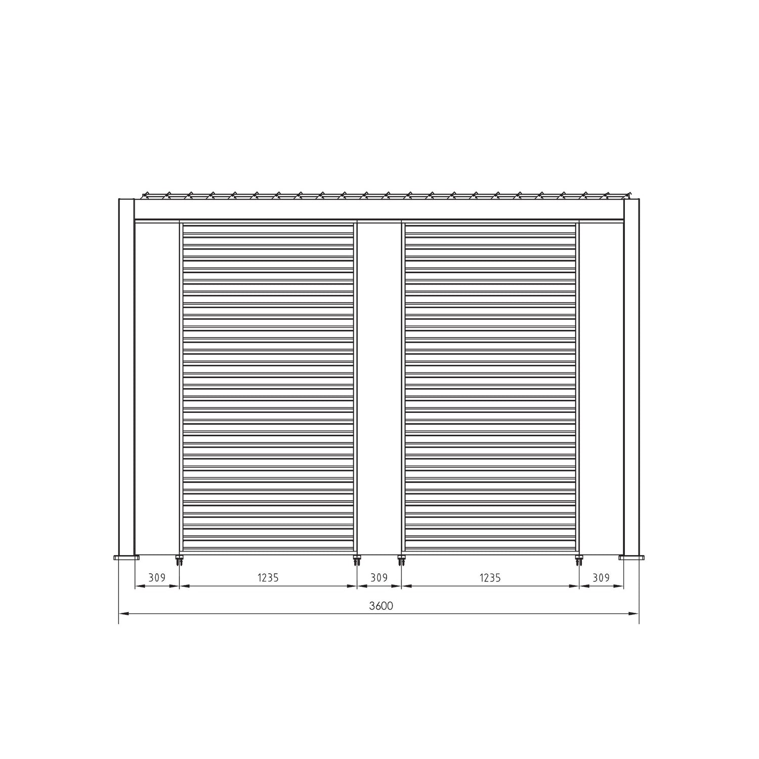 La struttura modulare consente di utilizzare più pannelli per coprire completamente un lato della pergola fino a 4 metri oppure per realizzare chiusure parziali su singoli lati o angoli, offrendo massima flessibilità progettuale. Il sistema di fissaggio con viti auto-foranti e la viteria in acciaio inox garantiscono un’installazione semplice e sicura.